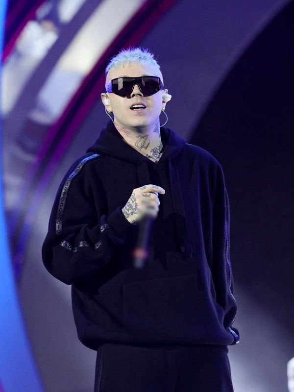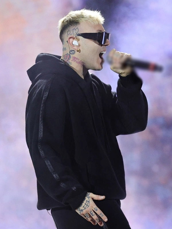 74th Sanremo Music Festival 2024 Lazza Black Oversized Pullover Hoodie